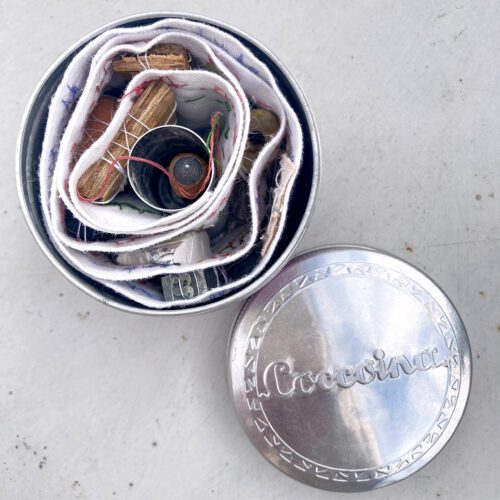 Un ritaglio di lino, una stoffa che ha riposato per anni in un cassetto, vecchi oggetti affascinanti in disuso, un filo ripassato più volte nello stesso punto. C’è qualcosa, in tutto questo, che resta: la pazienza, la memoria, la bellezza senza fretta. Il passato si intreccia con il presente in forme inaspettate, leggere, imperfette.